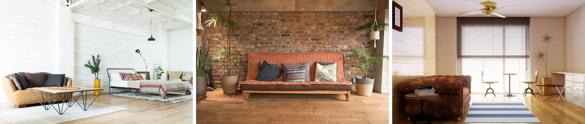 型苦しくない中にもどことなくアウトドアのワイルドさを取り入れることで、部屋の中に居ても非日常的感を演出いたします。
